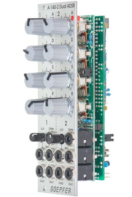 Module A-140-2 contains two ADSR type envelope generators behind a front panel with 8 HP only.