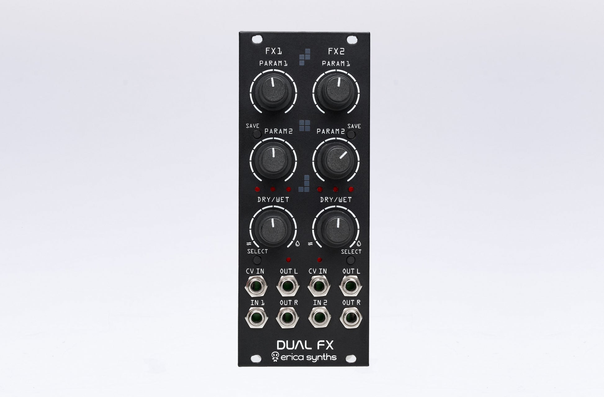To add some space to your compositions and nuances in sound design Erica Synths Dual FX module brings you two identical sections of 8 custom effects with two adjustable and CV controllable parameters.