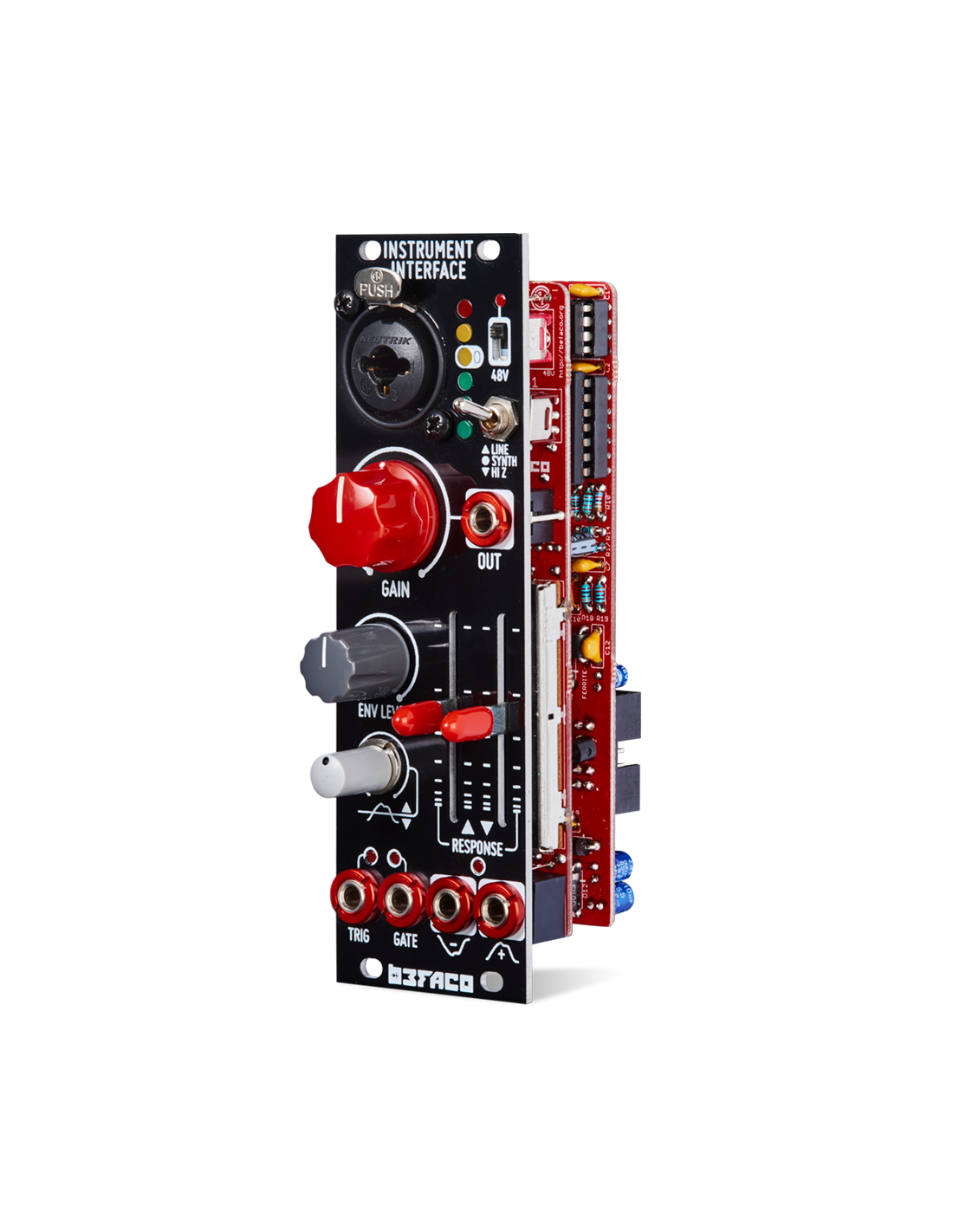 Instrument Interface is an eurorack pre-amp capable to bring any type of audio signal to modular levels thanks to its amplification circuit.