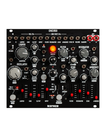 Featuring three oscillators, four effects, a looper, modulation with complex routing, and a randomizer.