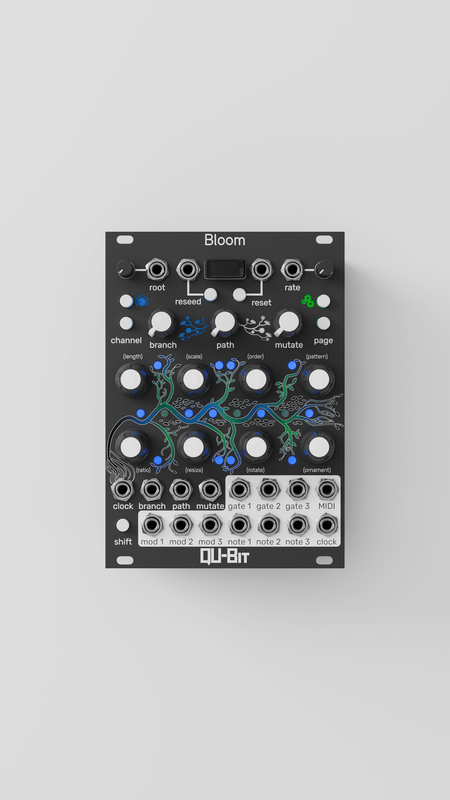 In its latest iteration, Bloom is a powerful 3-channel, 64-step CV and gate sequencer with a plethora of additional features and configurability compared to its predecessor. Apply clock-synced ratchets per step, dial in the Mutation range for random note variation, and even save and recall your Branches with your saved sequence!