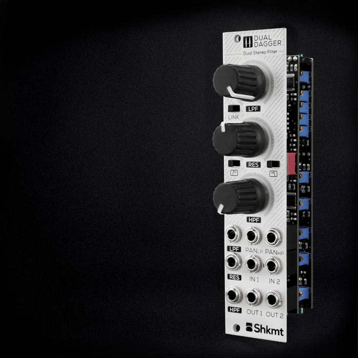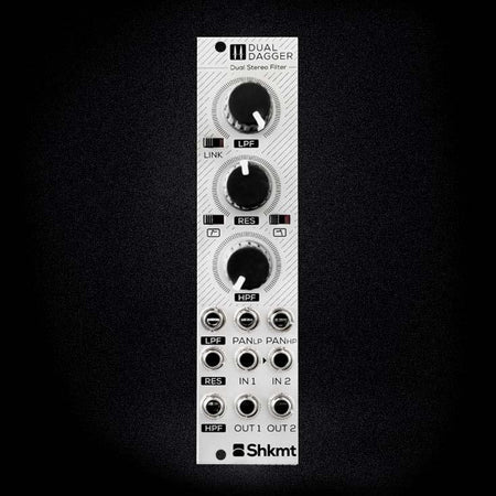 The Dual Dagger is a double-sided weapon, carefully sharpened to chop stereo signals. The module gives independent control over low-pass and high-pass cutoff frequencies, and an assignable resonance is shared on one control.