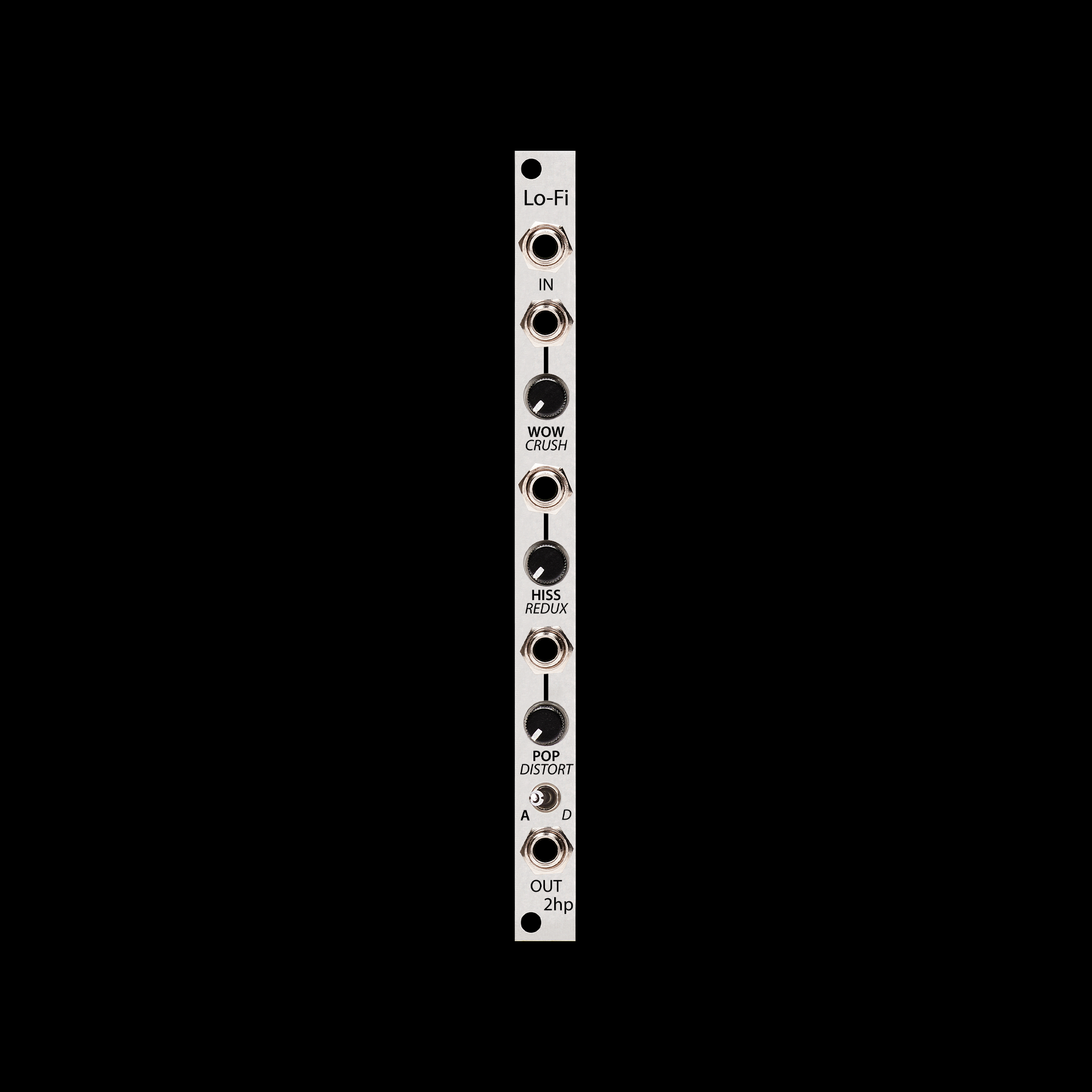 Emulate the nostalgic sounds of old audio equipment with the 2hp Lo-Fi. Finding inspiration in quirks and happy accidents found in audio devices of the past, Lo-Fi can take any sound and give it the magic of tasteful degradation.