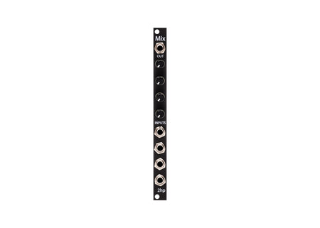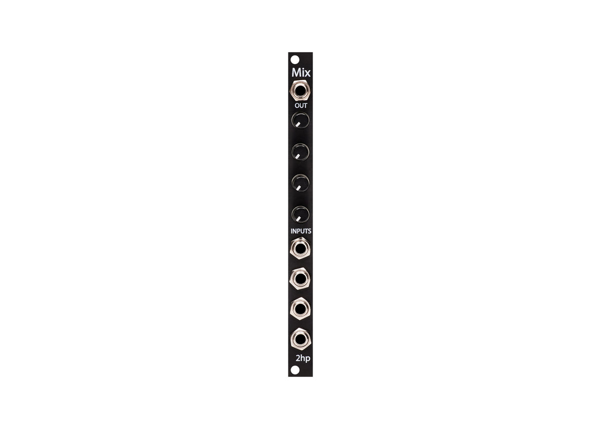 Mix is a 4 channel mixer that is great for audio or control voltage signals. Up to four inputs can be combined to a single output each with its own level control.