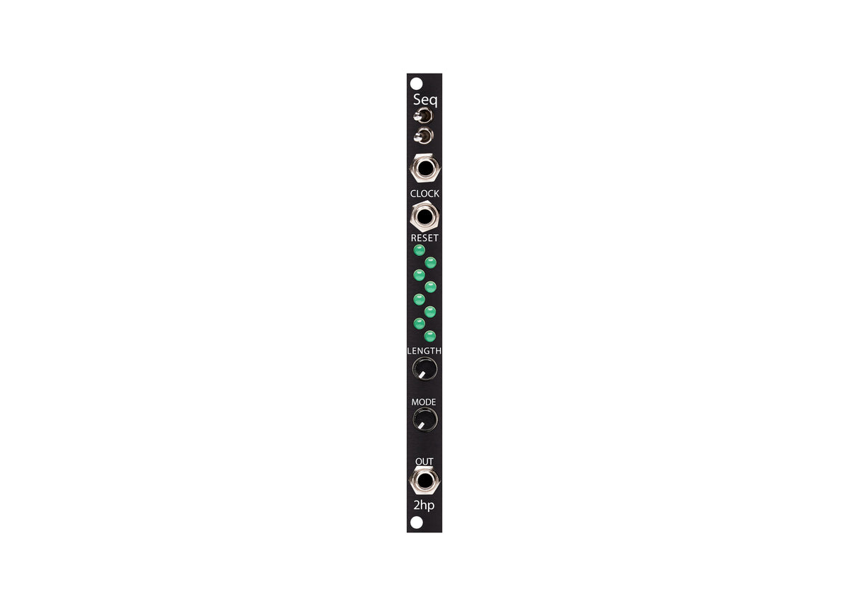 Seq is a 16 step sequencer that is great for controlling oscillators, filters, and anything with a CV input. Portamento, length and playback mode can be adjusted, allowing for versatile, and performable sequences.