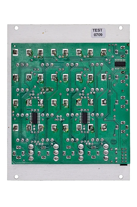 Unipolar means that the controls work as attenuators. Bipolar means that the controls work as polarizers. In this mode the amplification is zero in the middle position of the corresponding control. Turning the knob counterclockwise from the center position the signal is subtracted from the output sum with increasing amount (i.e. negative). Turning the knob clockwise from the center position the signal is added to the output sum with increasing amount. By means of an internal jumper one can select if the four upper controls work as DC offset generators - provided that no patch cord is plugged into the upper input socket. If this feature is not required it can be deactivated by removing the jumper on top left of the pc board. The function is identical to the A-138a/b.