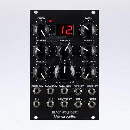 Black Hole DSP2 er den oppdaterte versjonen av klassikeren Black Hole DSP, og kommer med 24 effekter innebygget. Alle effektene har tre CV/knott-kontrollerbare parametre,  og man har også manuell og CV-kontroll over samplingfrekvensen slik at man kan gå fra topp lyd til grøtete digital lo-fi 🤤