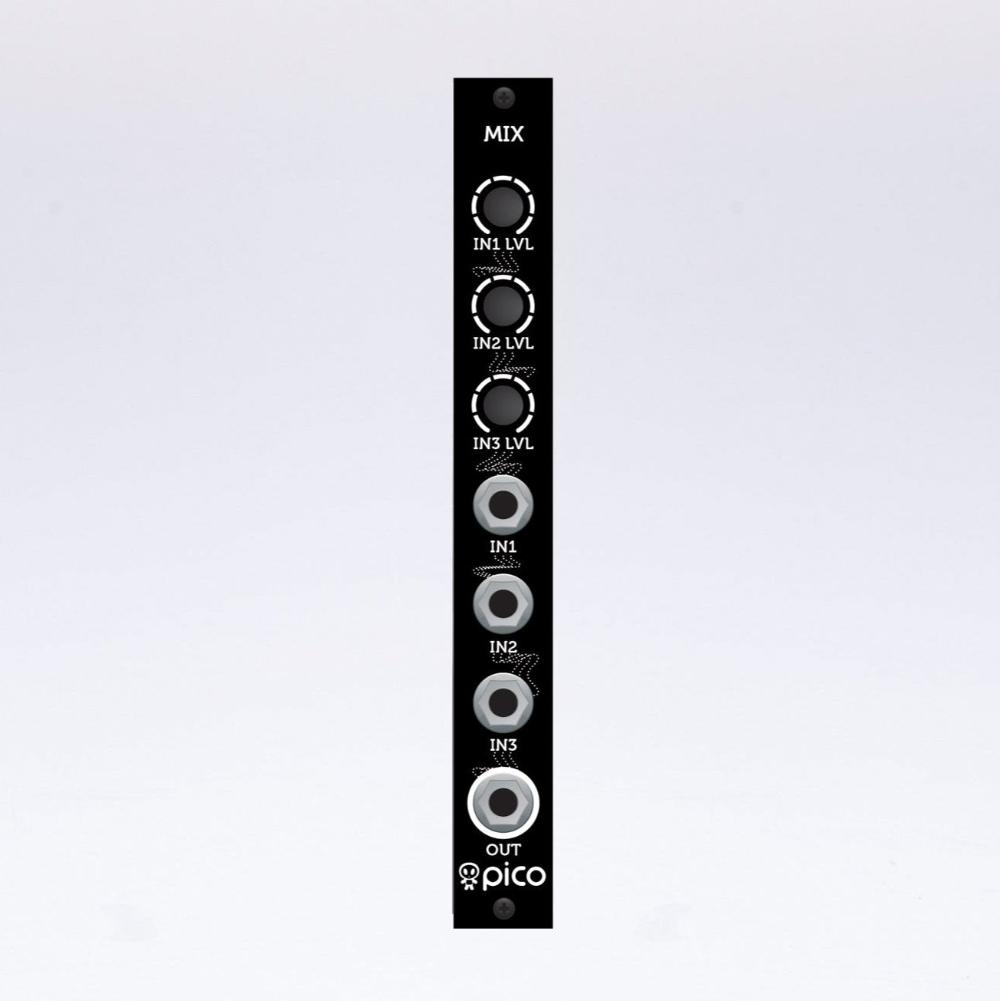 Pico Mixer is simple 3 channel DC coupled mixer intended to mix AUDIO SIGNALS AND CV SIGNALS in order to obtain complex modulations. Also it may serve as CV AND AUDIO attenuator.