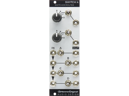 Finally, all signal paths are buffered, avoiding signal cuts when shorting a jack during patching or severe loading effects when driving many inputs. The high-end components provide exceptionally low noise and distortion, so Switch 4 can reliably process audio, control voltages and gates/triggers.
