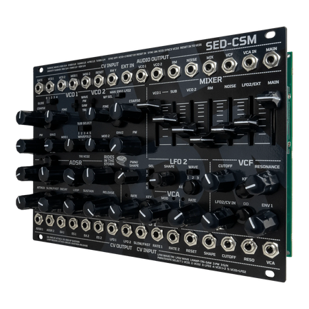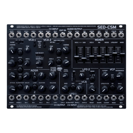 Analog diskret synthstemme med to VCO-er, tre SUB-VCO-er, wavefolder, støy, ringmodulator, to loopbare ADSR-er, to LFO-er/VCO-er, mikser, 24 dB lavpass-VCF, VCA