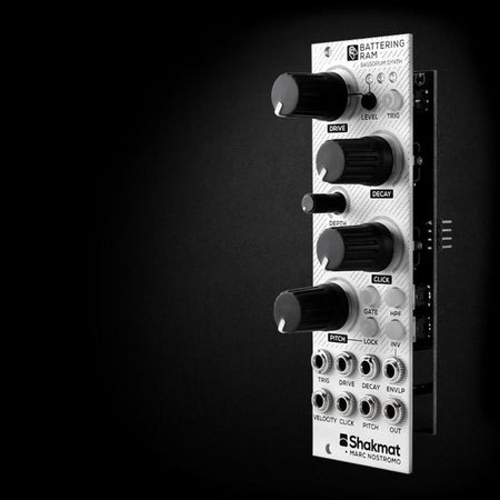 The Battering Ram is a bass drum synthesizer based on an original design by Marc Nostromo. This module offers precise control over various parameters, including decay, tuning, depth, click amount, and drive. These controls have been thoughtfully mapped to provide sweet spots at every combination of potentiometer settings. The drive section can seamlessly transition between two distinct wave-shaping modes, ranging from smooth drive/compression to hard-clipping distortion for core music lovers. For smooth modular integration, there's an additional output that mirrors the amplitude envelope or its inverted shape.