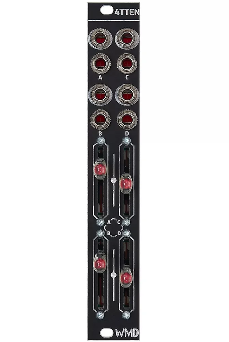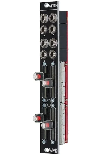 This module can come in handy in many patches. For example, a channel of the 4Atten can be used to modulate the CV input of a filter without an internal attenuator.